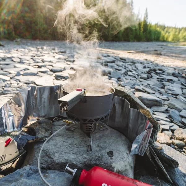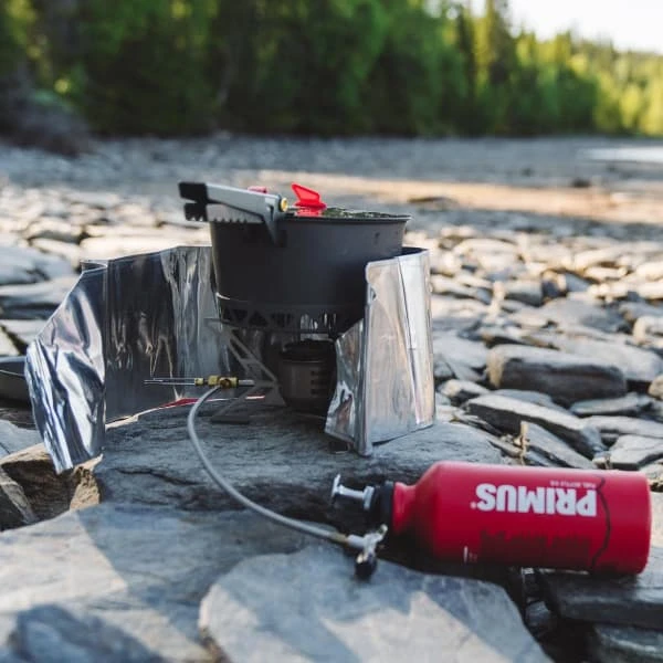 Windscreen and Heat Reflector Set increases heat output and shortens cooking time. The aluminium heat reflector focuses heat on the pot and preheating coil. Fits Primus OmniFuel, MultiFuel, Gravity, VariFuel, EasyFuel and ExpressSpider stoves.