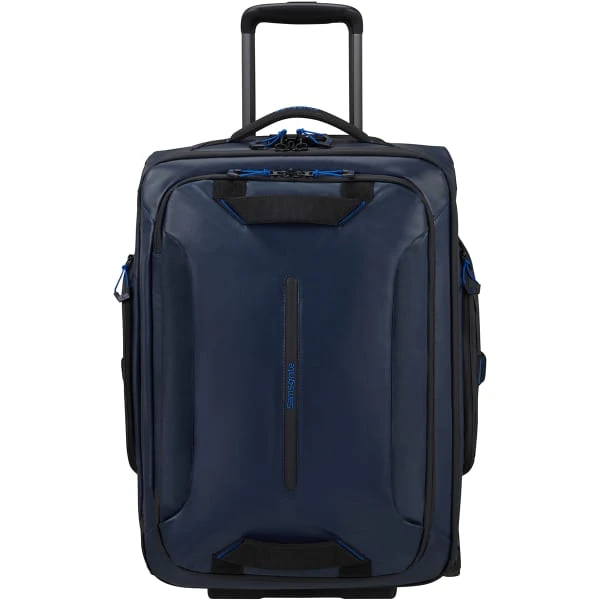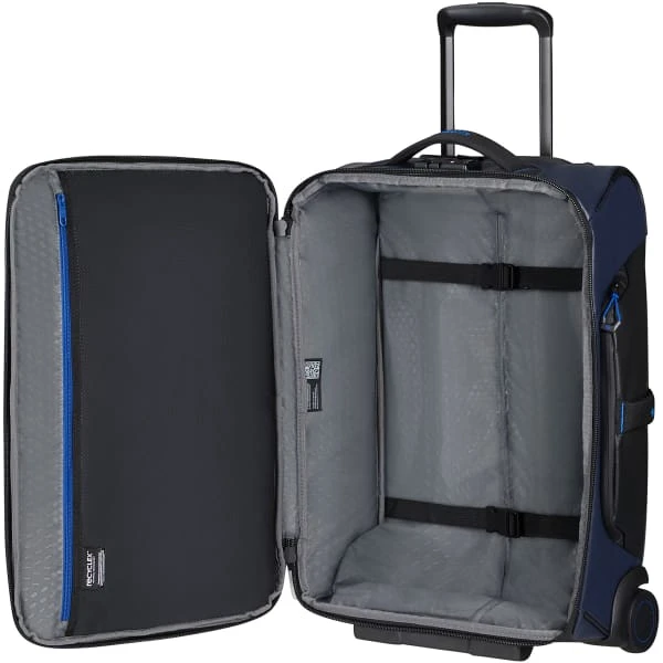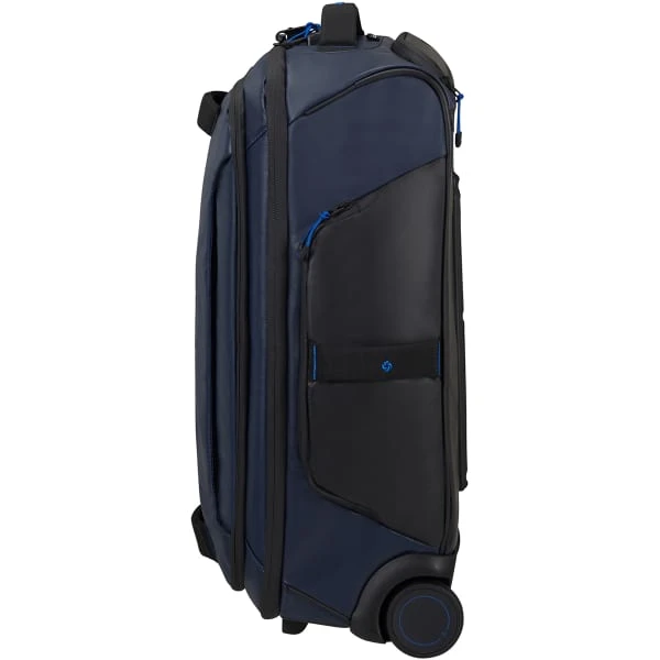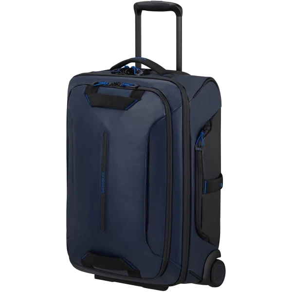 Combining functionality and sleek design, the Samsonite ECODIVER DUFFLE/WH 55/20 is a large volume wheeled travel bag developed specifically to emphasize safety and comfort.