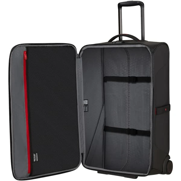 Combining functionality with a sleek design, the Samsonite ECODIVER DUFFLE/WH 67/24 is a high volume wheeled travel bag developed specifically to focus on safety and comfort.