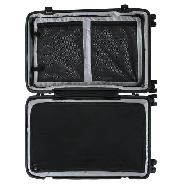This small hard case is the ideal accessory for the weekend warrior. The THE NORTH FACE ALL WEATHER 4 WHEELER 30 is both super tough and secure so you can take your stuff with you while traveling with peace of mind. Its 70L volume opens in two and lies flat, it is compartmentalized by various pockets and nets to organize and secure its contents.