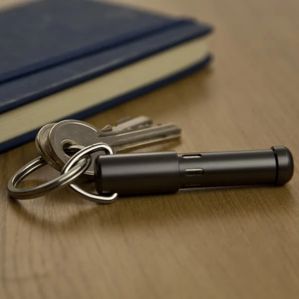 Designed to attach to a keychain or accessory, this pocket pen comes in a rigid, weather-resistant case.